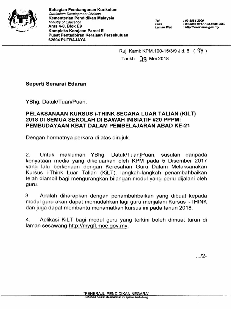 Taklimat secara luar talian diadakan pada setiap bulan dan dianjurkan oleh setiap janm negeri. Minta nasihat daripada penyelaras it 8. 6 kursus secara formal 1. Dalam talian kursus dalam talian splkpm. Salam … smksbs sekolah bertuah yang dipilih sebagai sekolah rintis bagi pelaksanaan kidt.