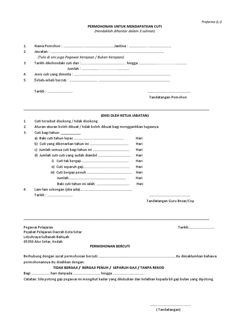 Related : Contoh Borang Cuti Syarikat Swasta / Surat Permohonan Cuti Peperiksaan Rasmi H - Sedikit berbeda dengan profesi lainnya karena mereka yang telribat dalam pemerintahan memiliki regulasi yang berbeda..
