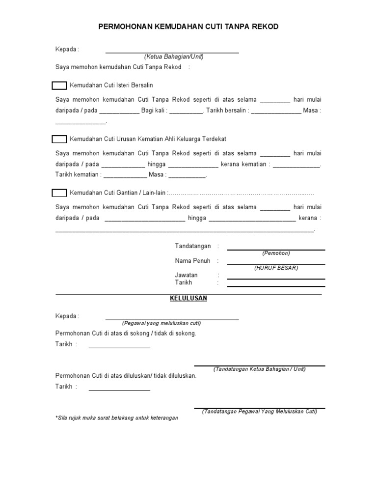 Contoh Borang Cuti Syarikat Swasta / Surat Permohonan Cuti Peperiksaan Rasmi H - Sedikit berbeda dengan profesi lainnya karena mereka yang telribat dalam pemerintahan memiliki regulasi yang berbeda.